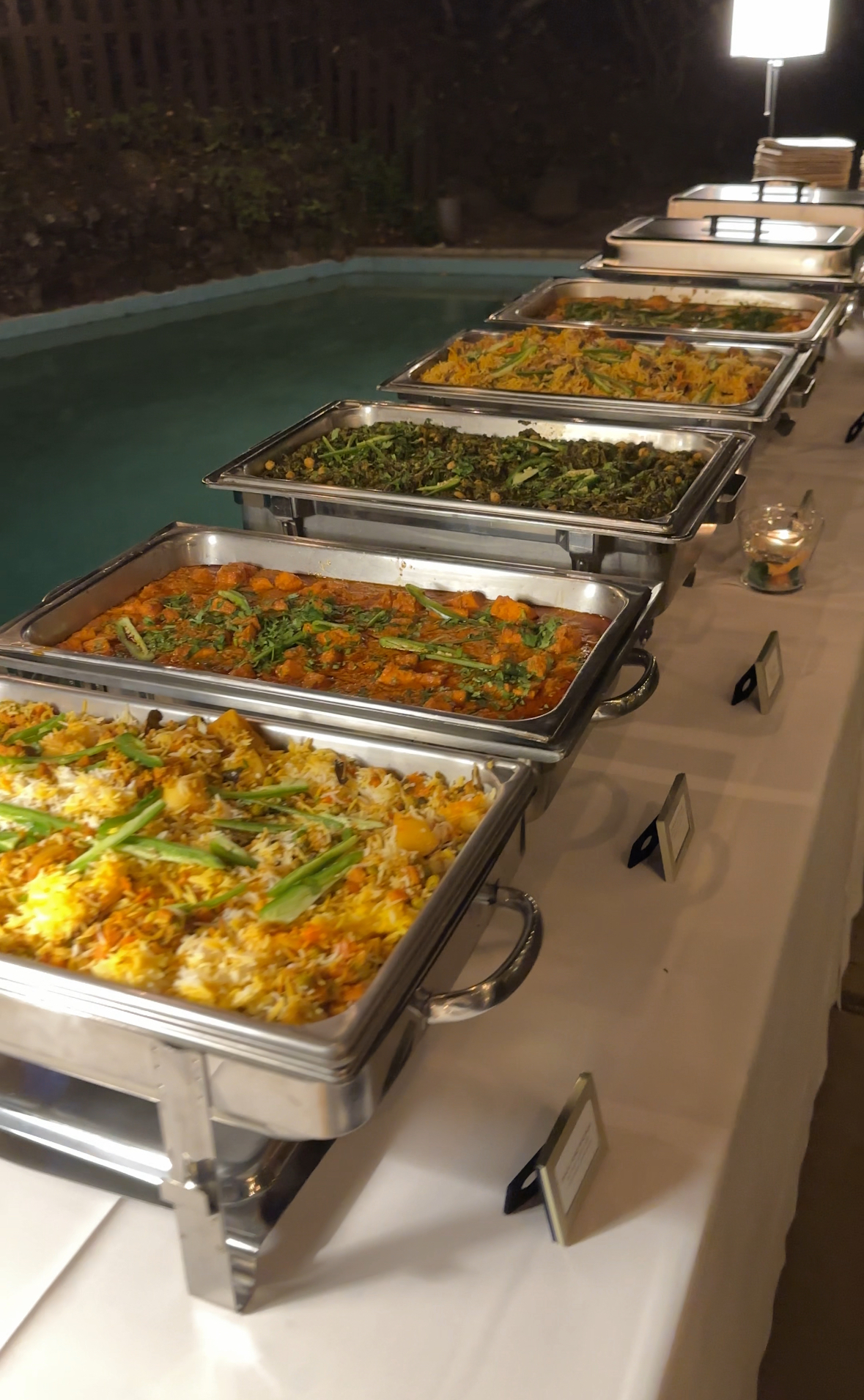 Setup includes warmers, serving trays, and add-ons if requested